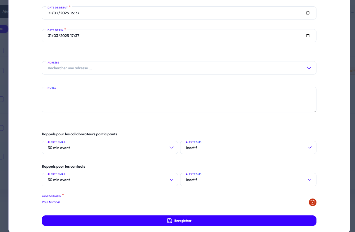 Avant d'enregistrer le RDV, pensez à programmer un rappel par mail et/ou SMS afin que votre contact ne l'oublie pas !