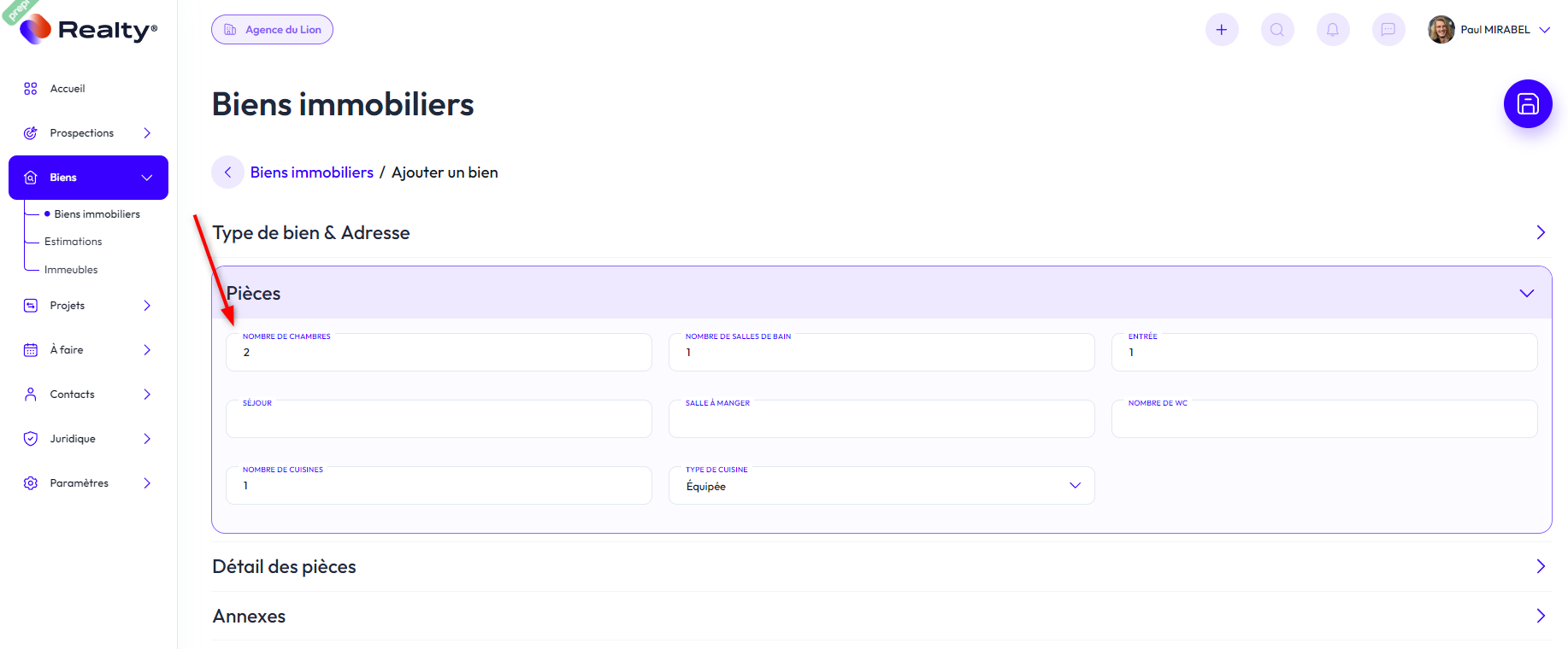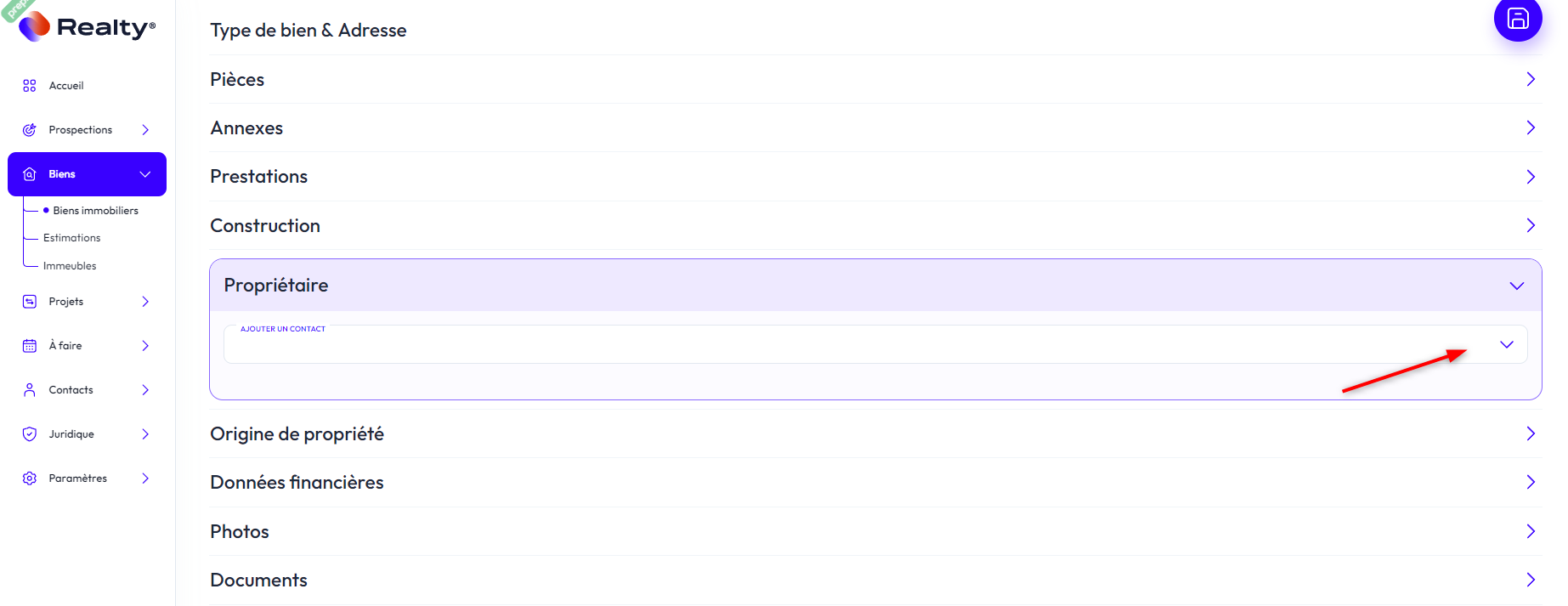 Renseignez le propriétaire afin que celui ci soit associé à la fiche du bien.