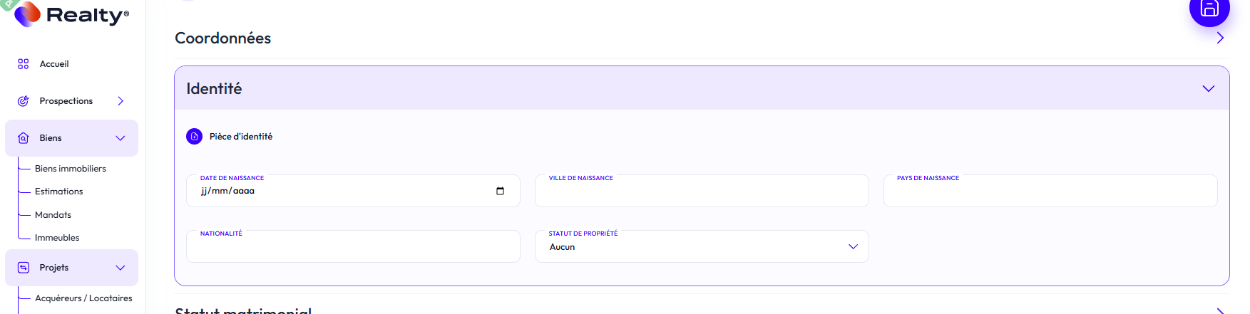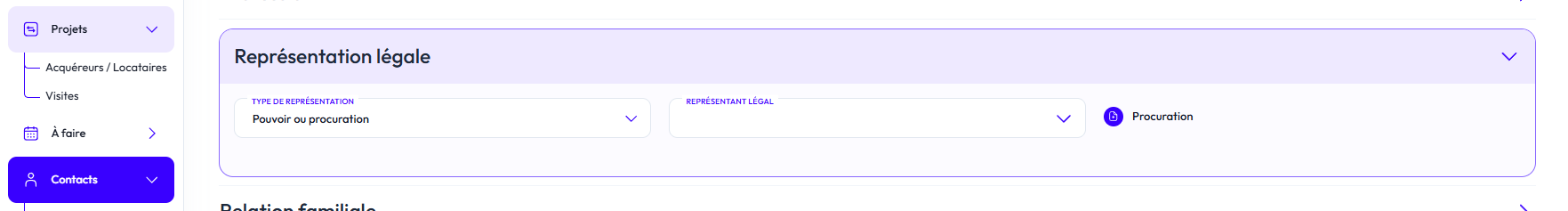 Si vous devez renseigner une représentation légale (procuration, curatelle, tutelle), vous pouvez remplir le contact ici. Cela sera utile lors de la signature d'un contrat avec Realty.