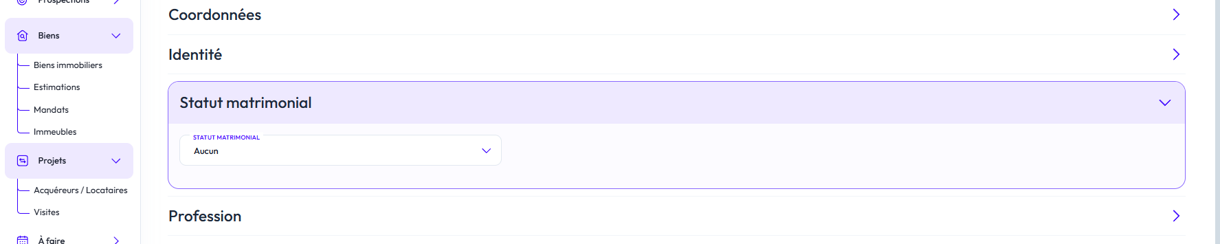 Saisissez le statut matrimonial
