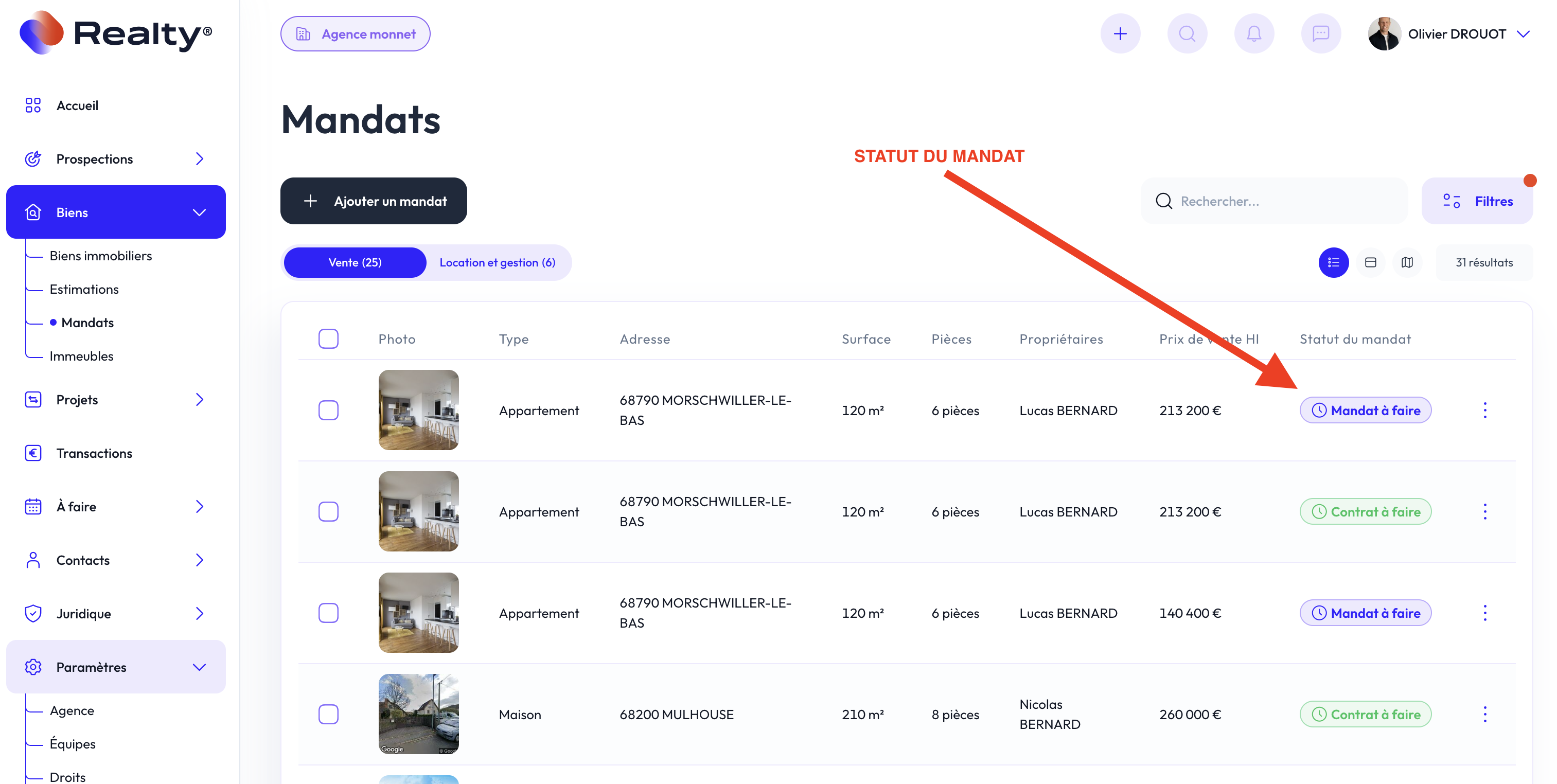 Vérifiez le statut de votre mandat dans REALTY