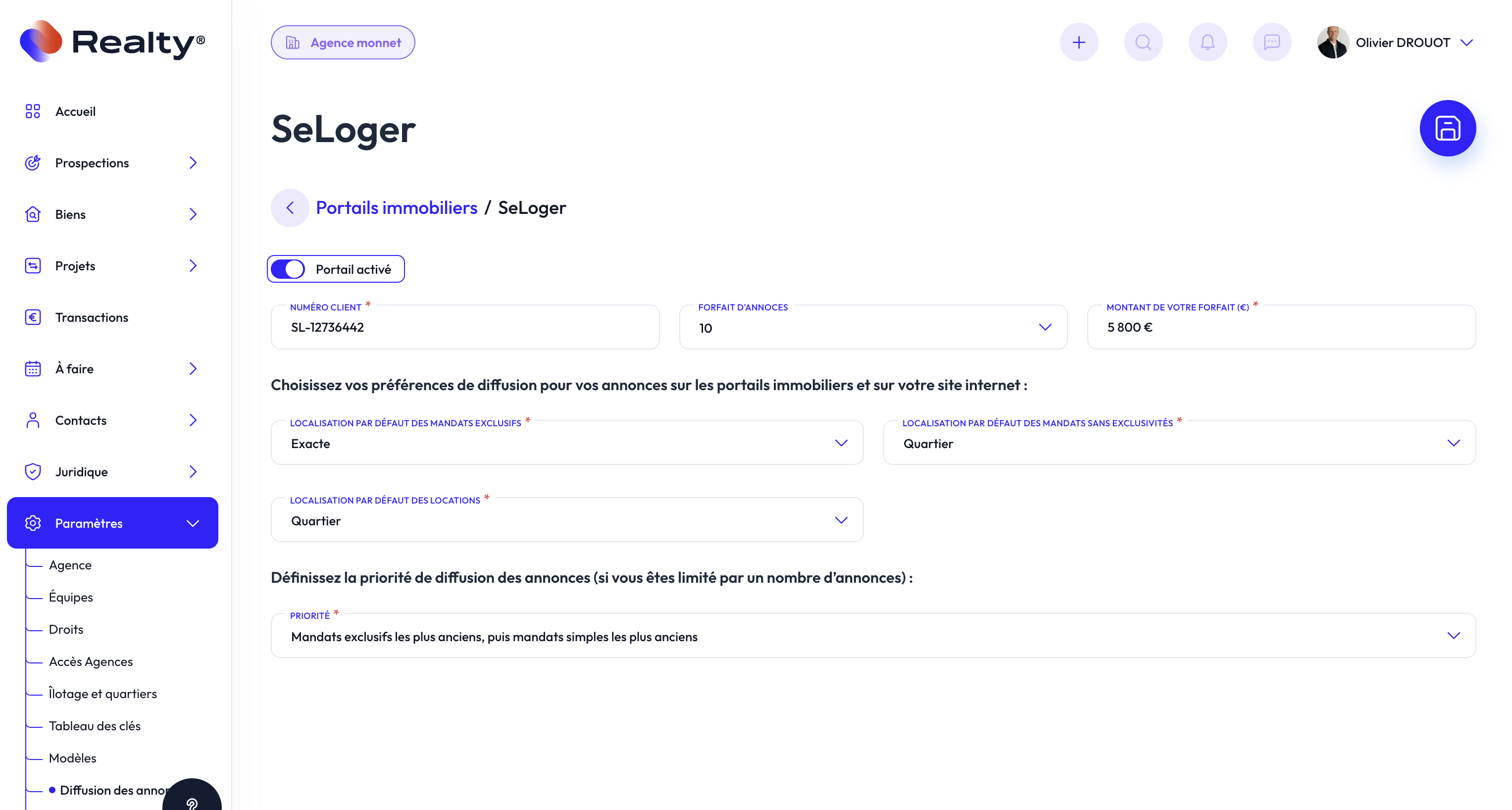 Vérifiez l'activation de vos portails immobiliers