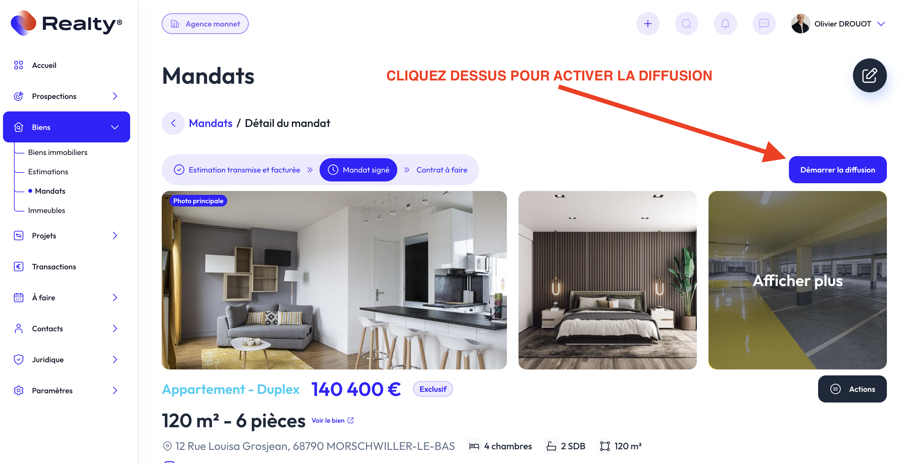 - Allez dans Biens -> Mandats.