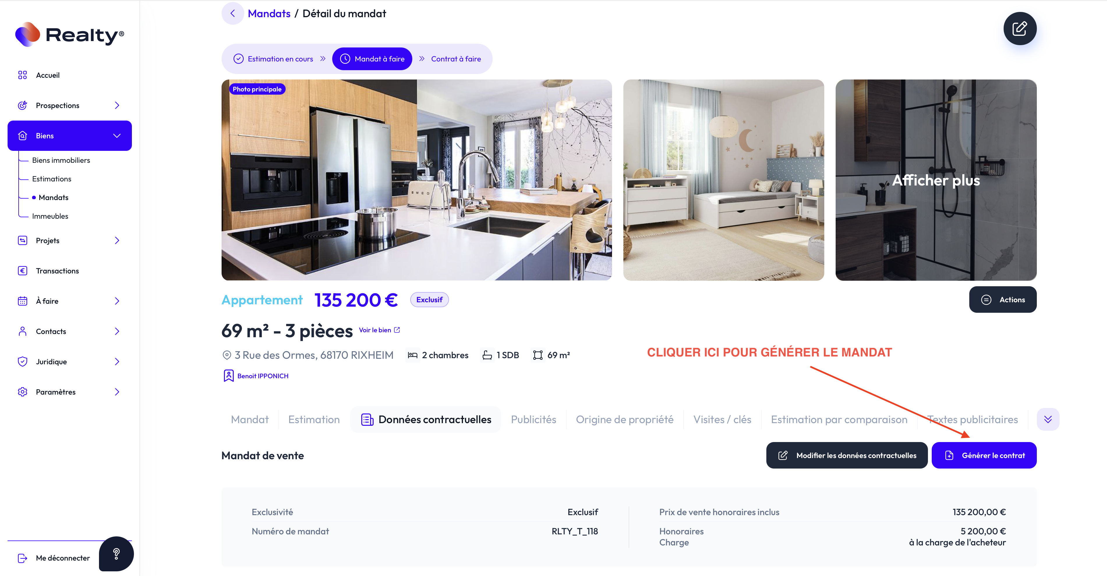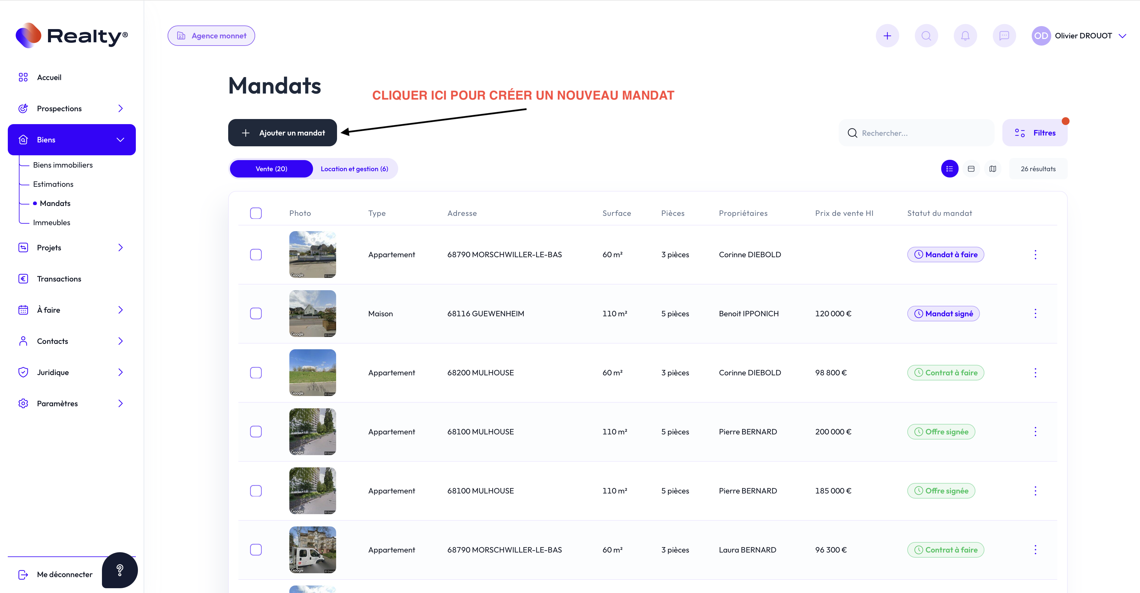 Cet article va vous permettre de mieux comprendre le fonctionnement de REALTY pour générer un mandat de vente de vente, de location ou de gestion directement à partir de la fiche mandat. Le fonctionnement sera exactement le même sur mobile, vous évitant ainsi de ressaisir des informations dans un autre logiciel ou de devoir rester sur un ordinateur.