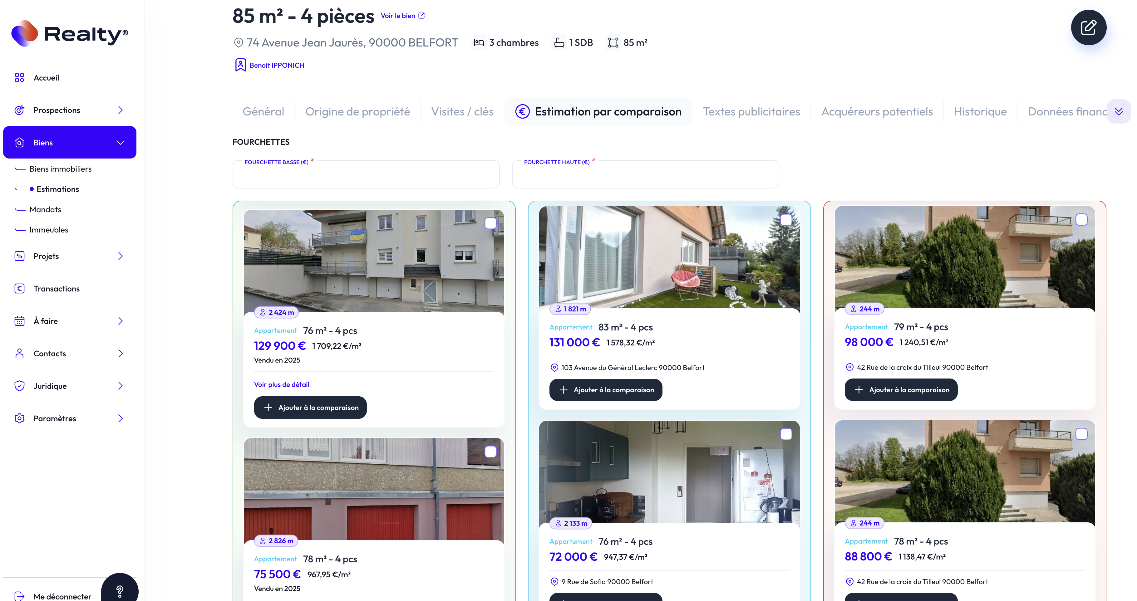 Chez REALTY, nous avons à cœur de vous proposer le meilleur système d’estimation possible. Toutefois, pour qu’une estimation soit réellement fiable, et même si nous vous facilitons largement le travail en vous accompagnant dans la définition du prix, c’est bien vous qui apportez la touche finale en sélectionnant les biens comparables les plus pertinents.