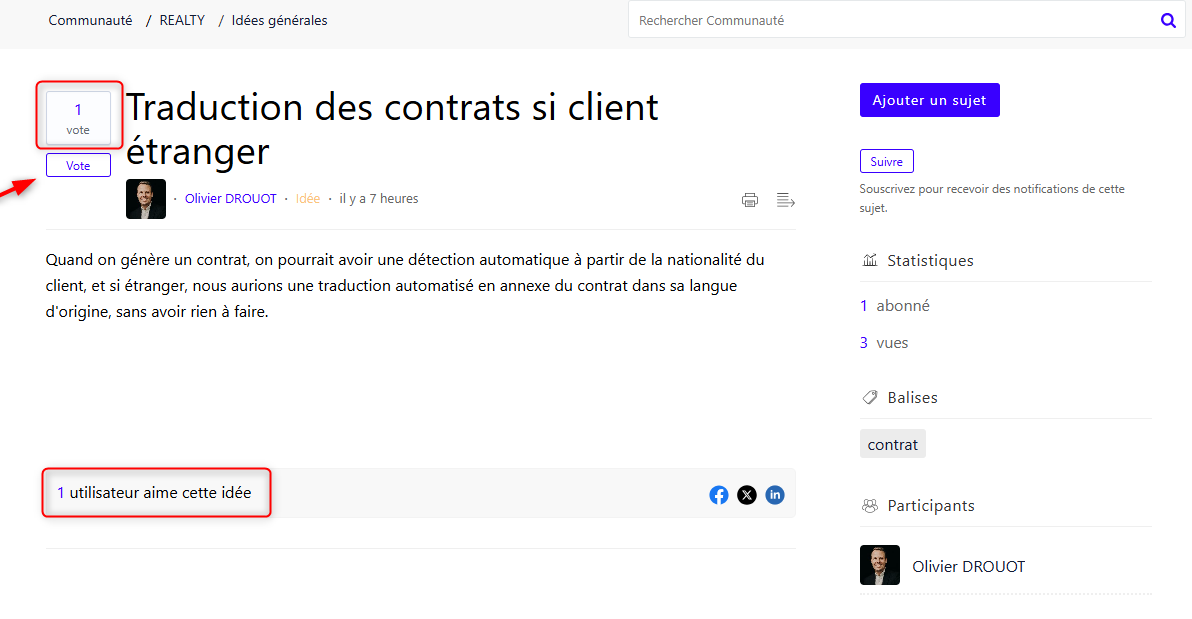 Une fois vos idées publiées, les membres de la communauté peuvent voter.