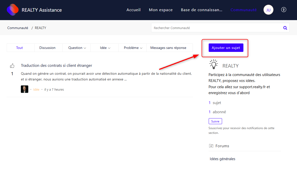Cliquez sur "ajouter un sujet" afin de commencer à partager vos idées