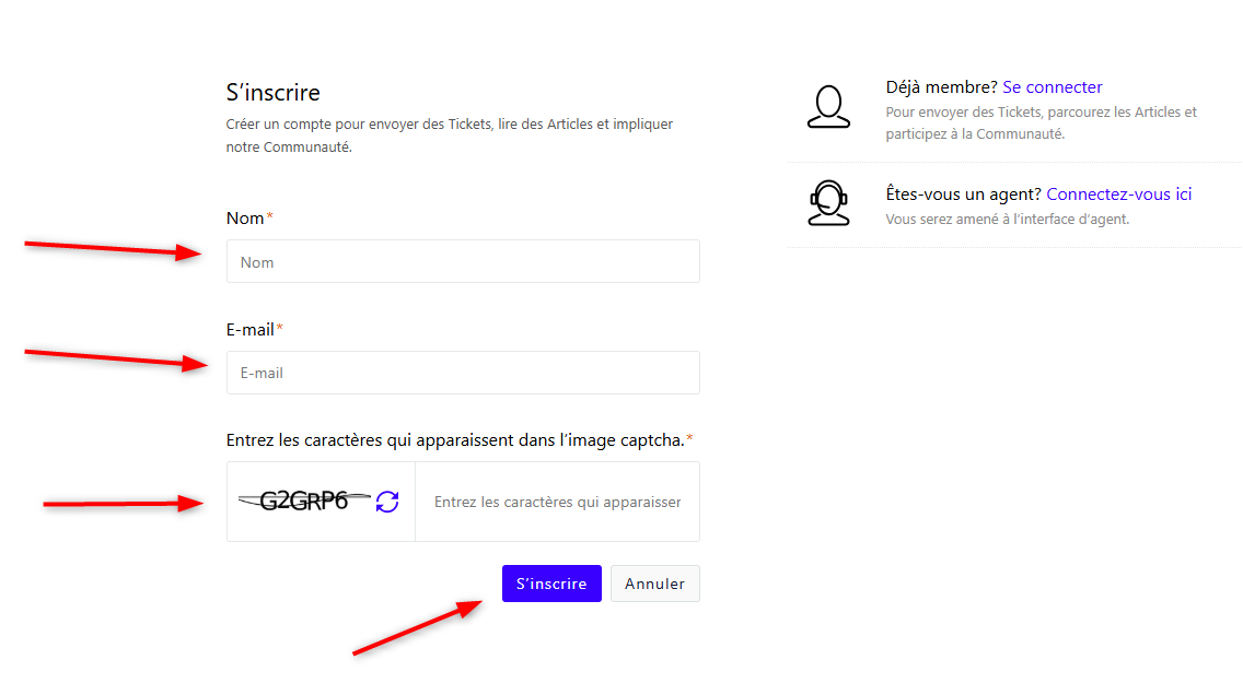 Lors de l'inscription, renseignez votre Nom, adresse E-mail puis le code de vérification. Vous pouvez ensuite vous inscrire en cliquant sur le bouton du même nom .